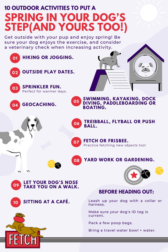 Spring is here! Whether you're the outdoorsy beach kayaking dog or the brunch at your favorite cafe dog or the mountain trail hiking dog or the grabbing drinks on the patio dog, going out on the town with your best four-legged friend requires making sure you are prepared. These are our five favorite essentials to have for your dog when getting out together and enjoying the fresh air. 1. ID Tag Tag your dog before heading out together! The simple step of attaching a current and legible identification tag on your dog's collar or harness is an effective way to ensure that your dog can be identified and returned to you if it gets lost while you are out on an adventure. We dig the colorful...